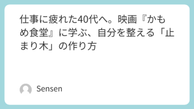 仕事に疲れた40代へ。映画『かもめ食堂』に学ぶ、自分を整える「止まり木」の作り方
